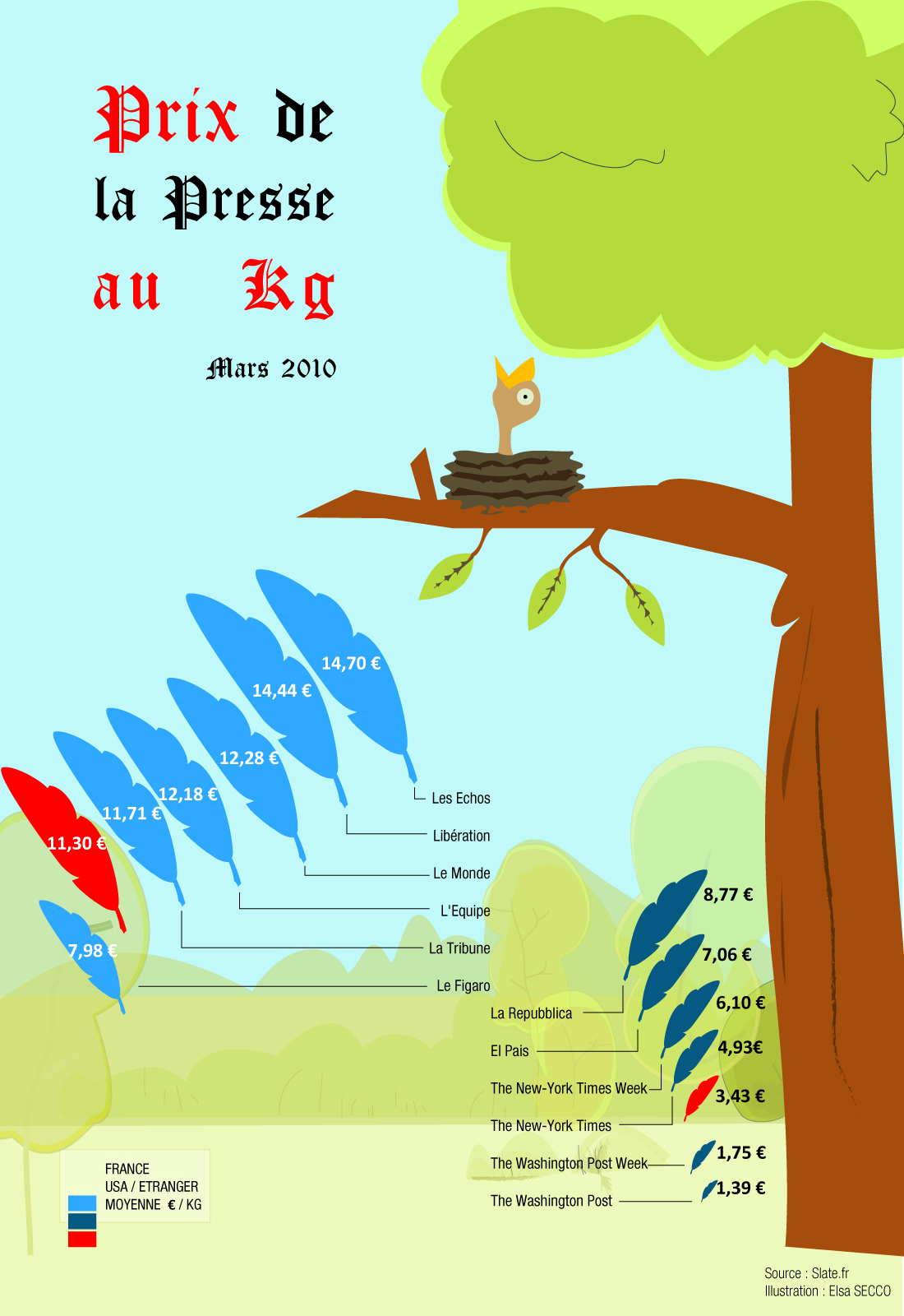 L a presse française, coûte, en moyenne 11,30€ le Kg alors qu’aux Etats-Unis elle coûte moins de 2€ le Kg, selon les calculs de PhDx dans son récent article sur slate.fr.