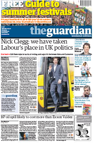 A la suite de la gaffe de Gordon Brown, qui a traité une sympathisante de ‘bigote’, le Guardian a également déserté le camp sortant. Dans son dernier éditorial, le journal affirmait que le moment du parti Libéral-Démocrate était venu, le soutenant du même coup.