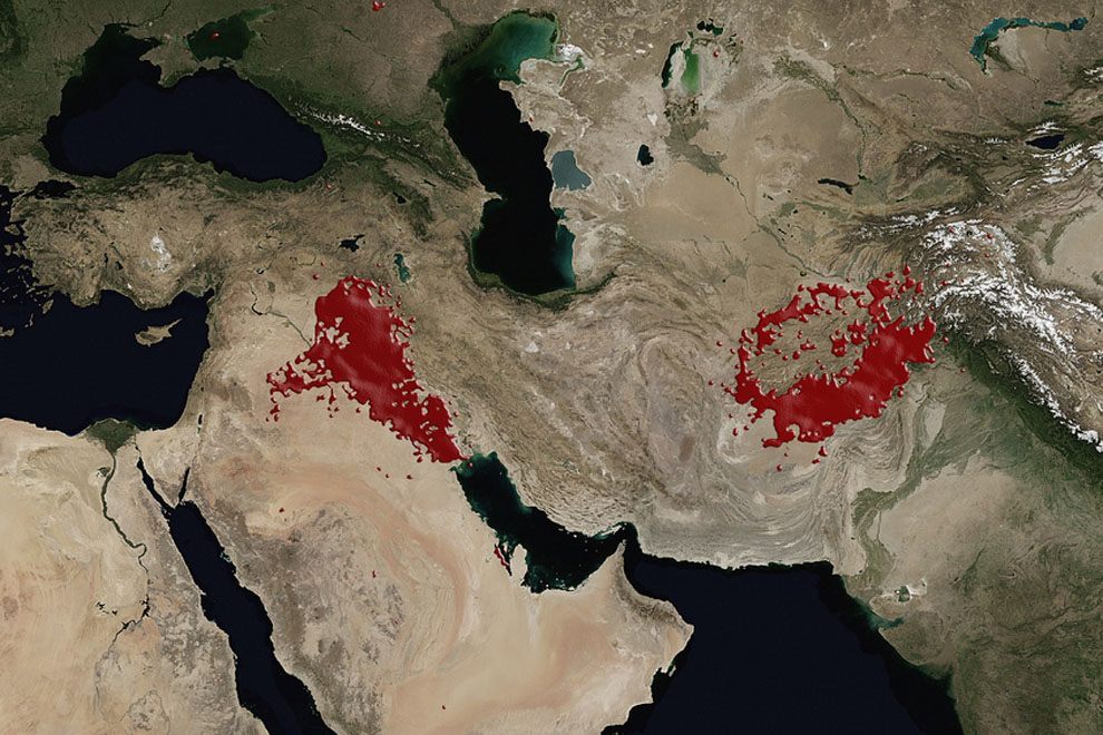 Promesse de sa campagne électorale, Barack Obama annonce le retrait des troupes d’Irak après son élection. Entre avril 2009 et septembre 2010, le nombre de troupes engagés passe de 39 000 à 98 000, soit 2,5 fois plus. En juin 2009, la situation s’inverse entre les deux pays : les troupes déployées en Afghanistan sont plus nombreuses que les troupes au sol en Irak, conséquence du “surge” afghan et du retrait irakien.