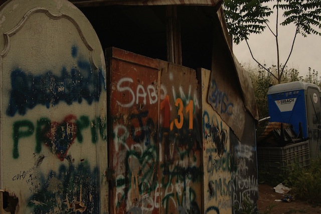 Figurez-vous qu’on a pas le droit d’aller à celles du haut ! Il y a un grand panneau : pas de tsiganes. Celles du bas ne fonctionnent pas. Du coup, je préfère me retenir et aller chez moi.