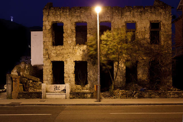 Cette année, aucun incident, aucun affrontement entre supporters n’est à déplorer. Peut-être en raison de l’imposant déploiement de forces de l’ordre, plus de 500 hommes occupant la ville dès la veille du match. Mais l’ambiance est tendue. Des croix gammées et des symboles oustachis [un mouvement nationaliste et fasciste croate] ont fait leur apparition sur certains monuments de Mostar. Et notamment sur les sépultures du premier cimetière hérité du conflit des années 1990, où se mêlent les tombes des soldats des deux camps. L’Å“uvre de quelques fanatiques, sans doute. Pour les habitants, ils font presque partie du décor. Mais il y a là plus que du folklore.
