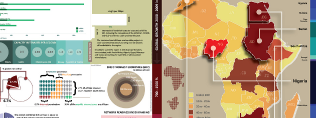 Après toutes ces applications interactives, voilà un lien pour reposer les doigts et faire travailler les yeux. Inutile de crier au “vieux lien” (“oldlink” pour les anglophones) : oui, ce post de blog date de décembre 2009. Il n’empêche que se replonger dans 30 beaux exemples d’infographies ne peut pas faire de mal. Si certaines tiennent le haut du pavé depuis longtemps – comme la représentation des différences entre droite et gauche par David McCandless – d’autres peuvent vous être plus inconnues, comme la visualisation des pays producteurs de vins sous forme de grappe (par le designer brésilien Alexandre Suannes) ou de celle de l’état d’Internet sur le continent africain (InfoState of Africa).